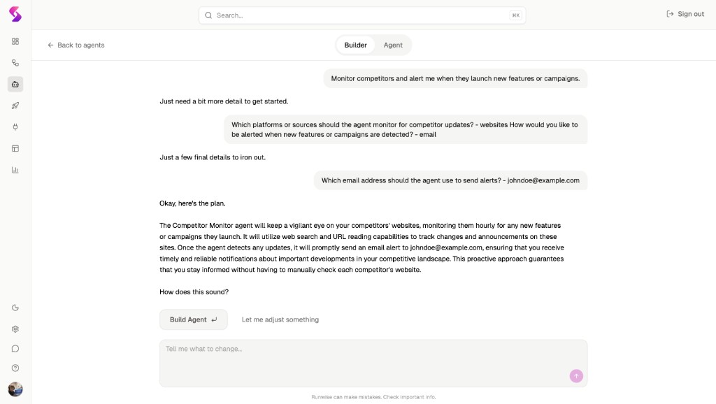 Go from prompt to a running workflow in minutes—connect your tools and iterate with your team.